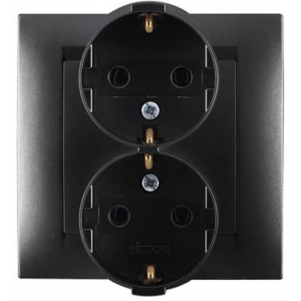 • 1590459-038 Розетка двойная с заземлением Schuko, 16А 250В, винтовой зажим, графит Simon 15