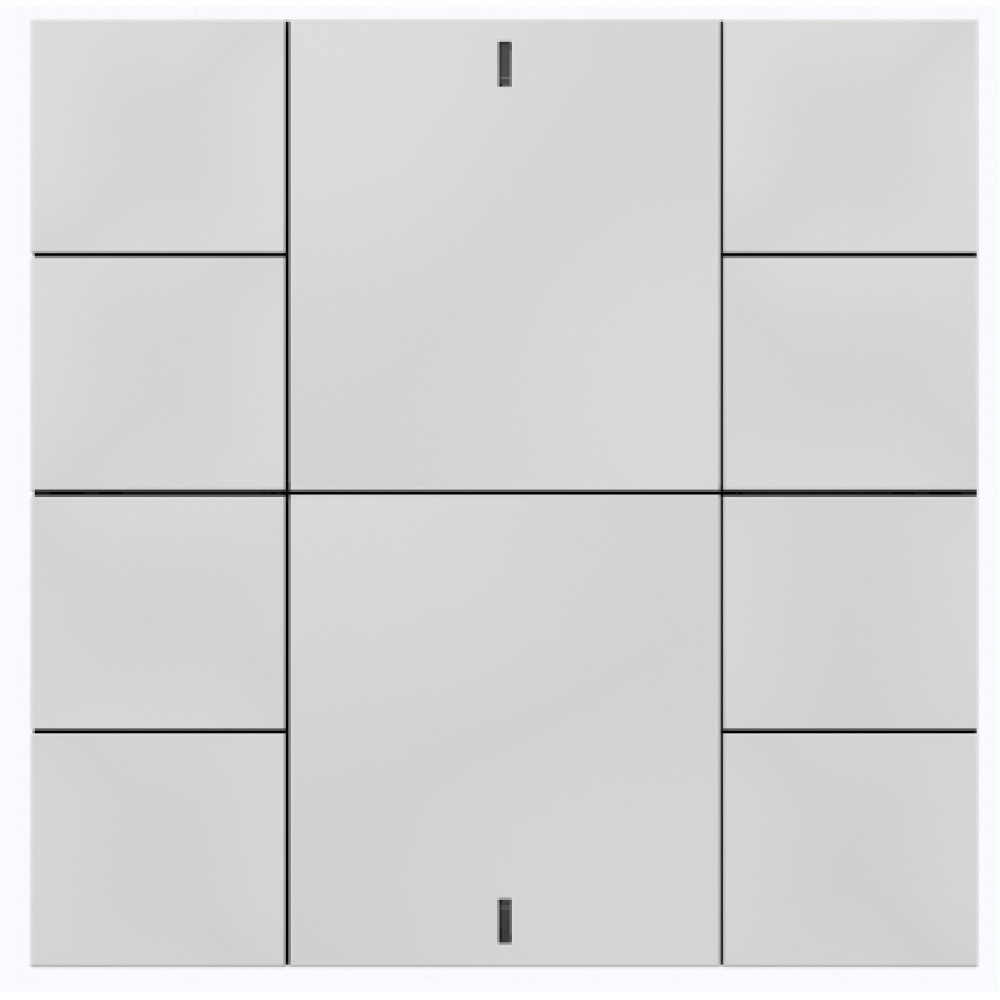 Многофункциональный настенный выключатель iSwitch+ с 10 независимыми кнопками, встроенными датчиками температуры, влажности и освещённости, LED-индикацией и двумя универсальными входами. Корпус из пластика, цвет белый матовый. Интегрируется с BCU для централизованного управления умным домом.