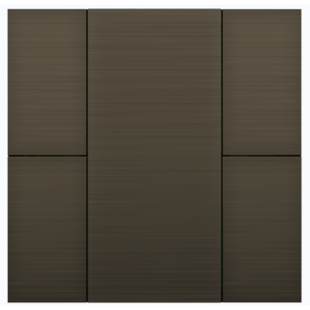 Настенный интеллектуальный выключатель Interra iSwitch+ с четырьмя программируемыми клавишами, встроенными датчиками температуры, влажности и освещенности, LED‑индикацией, двумя универсальными входами и встроенным BCU. Корпус из анодированного шлифованного алюминия, цвет бронза.