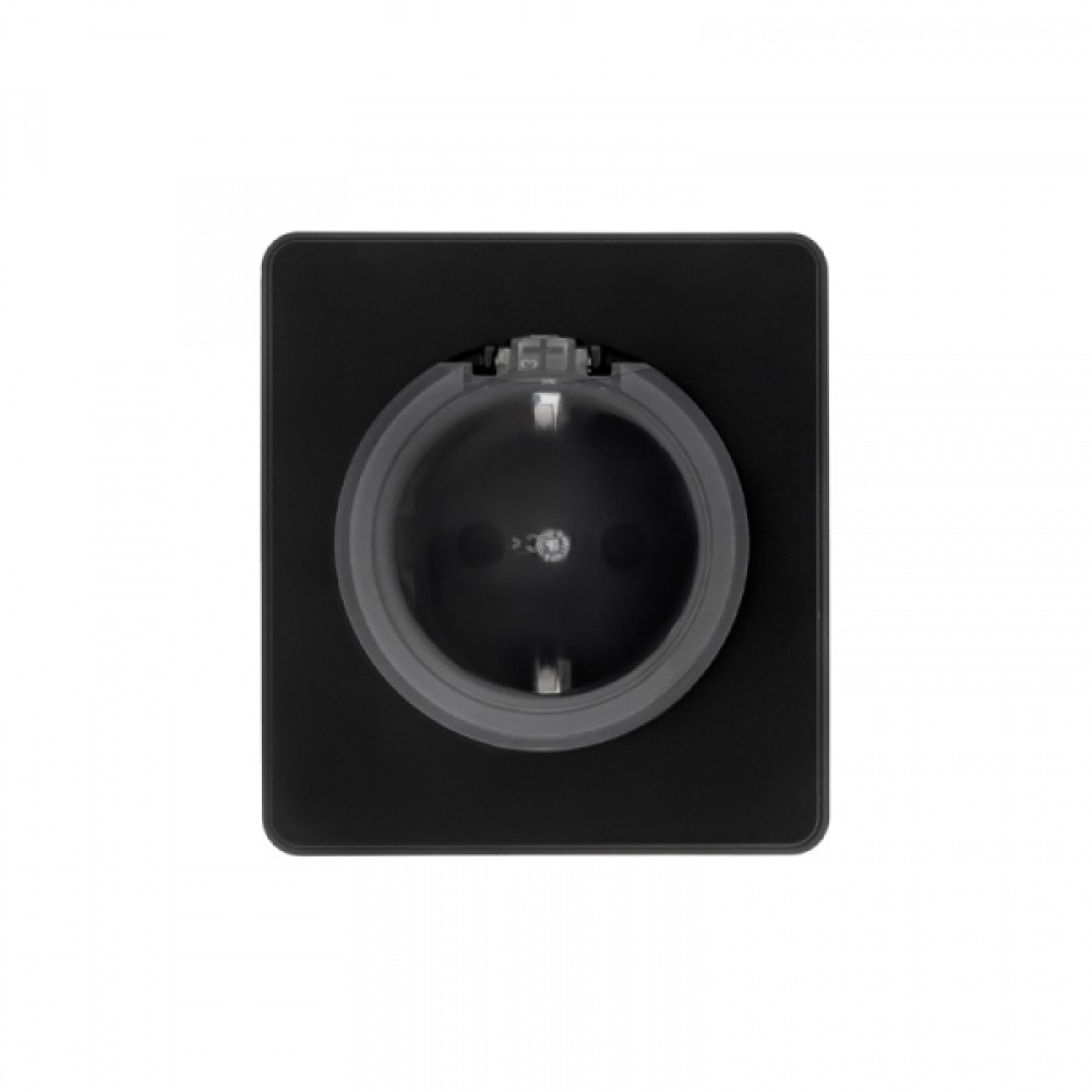 KRANZ ROUND Розетка 1-ая с/з с/у, со шторками и крышкой 16А оникс, с 1-пост. рамкой