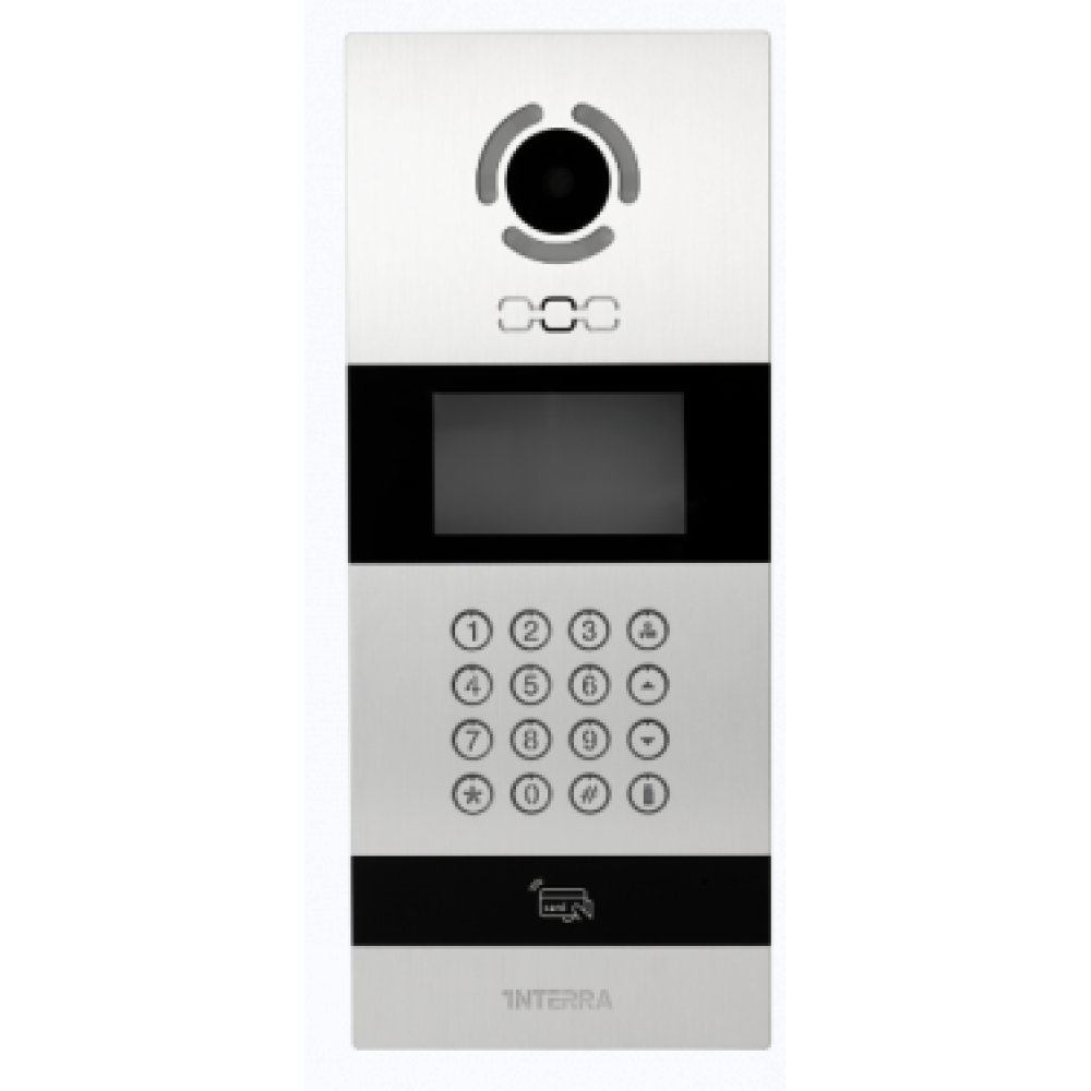 interra Вызывная панель многоабонентского видеодомофона, 4,3" TFT, ОС Linux, 12 V / PoE, SIP, картридер до 20 000 карт, механические кнопки, мобильное управление, IP65, алюминиевая рамка