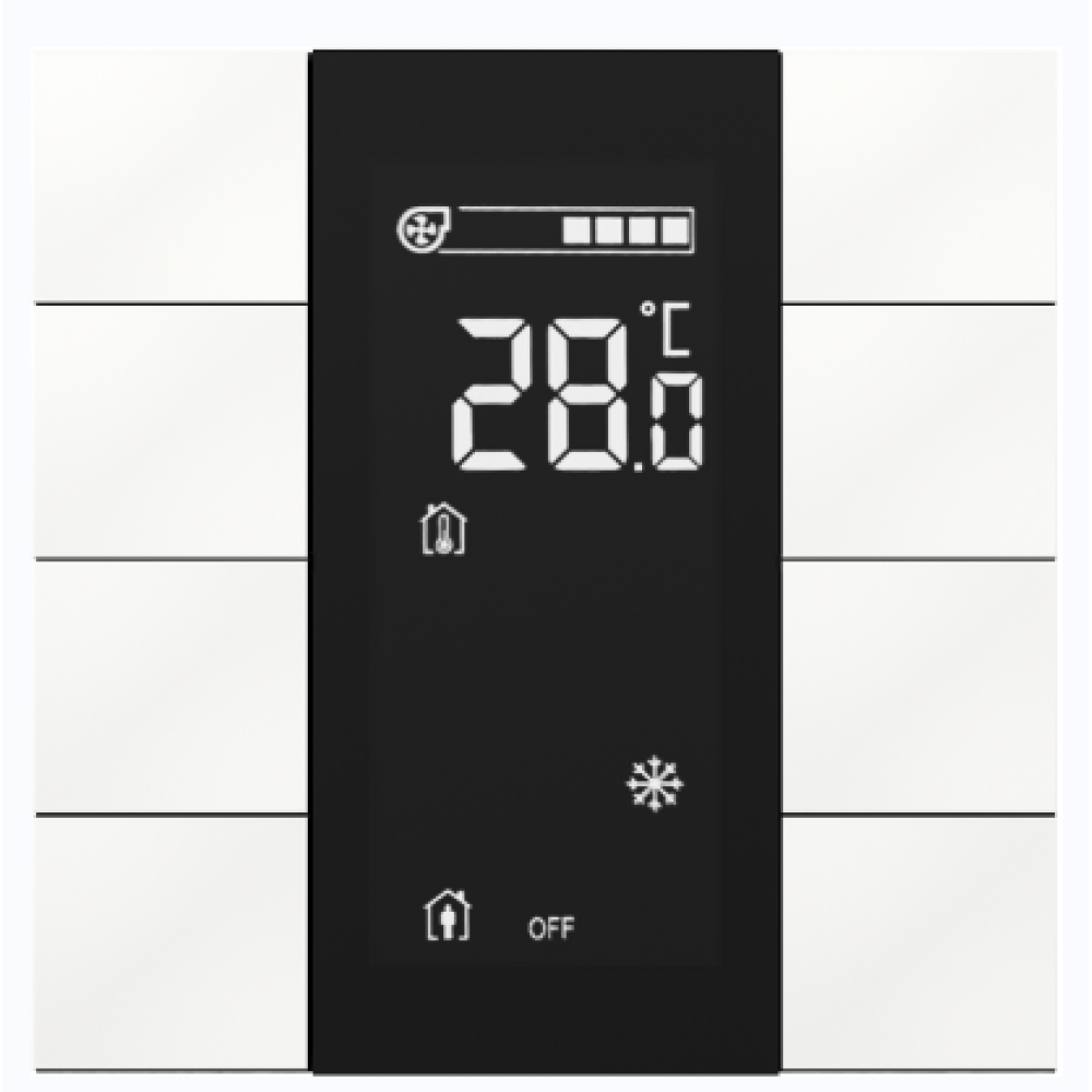 - Сенсорный настенный контроллер с 8 настраиваемыми кнопками и интегрированным ЖК‑дисплеем для отображения состояния, текущих значений и меню. Корпус из пластика белого глянца. Встроенные датчики температуры, относительной влажности и освещенности. LED‑индикация состояния. Два универсальных входа для подключения внешних датчиков или кнопок. Поддерживается интеграция с BCU (Building Control Unit) для централизованного управления и сбора телеметрии.