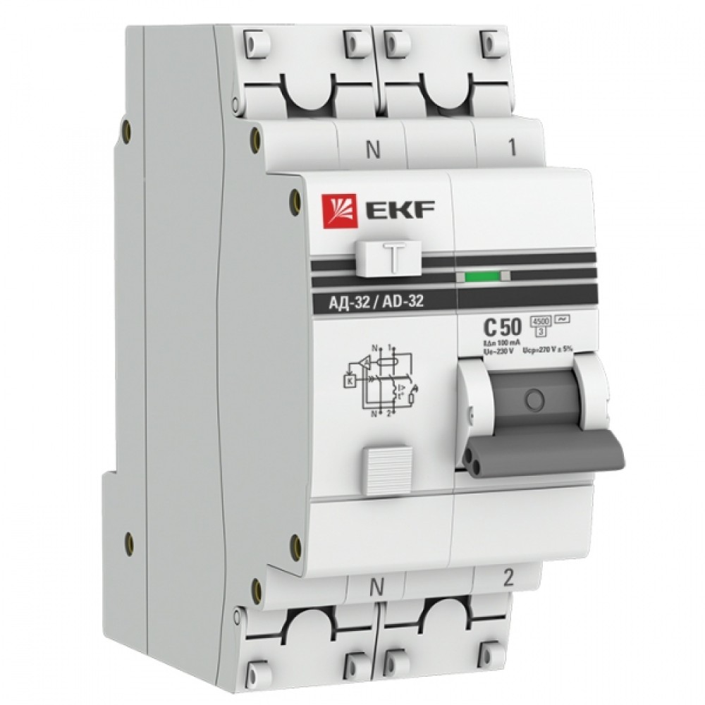 • АД-32 Диф. Автомат (C) 1P+N 50А/100мА тип АС 4,5кА , электронный EKF PROxima