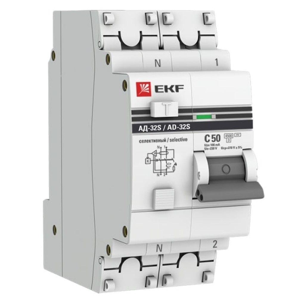 • АД-32 Диф. Автомат (C) 1P+N 50А/100мА тип АС 4,5кА , селективный EKF PROxima