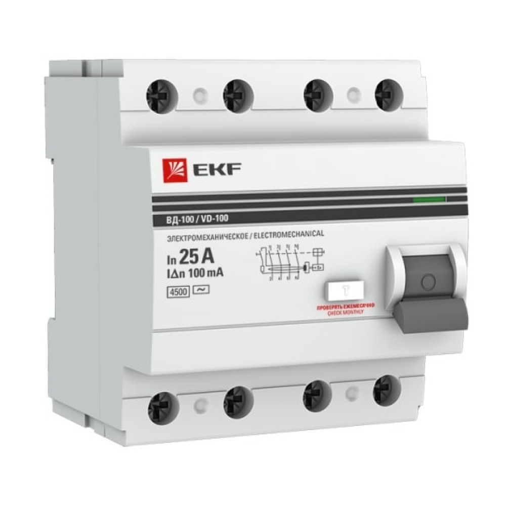 • ВД-100 УЗО 4P 25А/100мА (AC) электромеханическое EKF PROxima