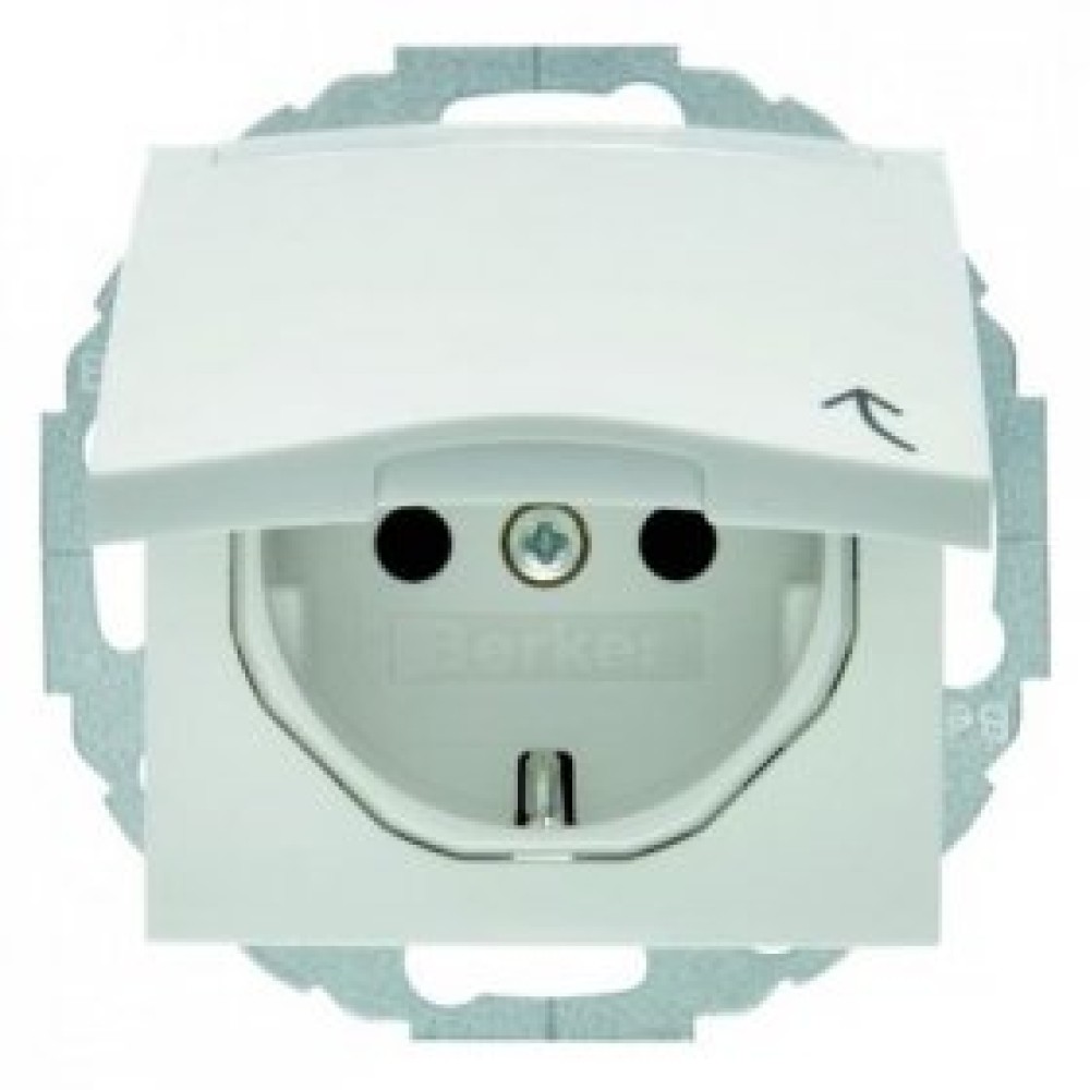 47468989 Штепсельная розетка SCHUKO с откидной крышкой и полем для надписи цвет: полярная белизна, с блеском S.1/B.3/B.7 Glas Berker