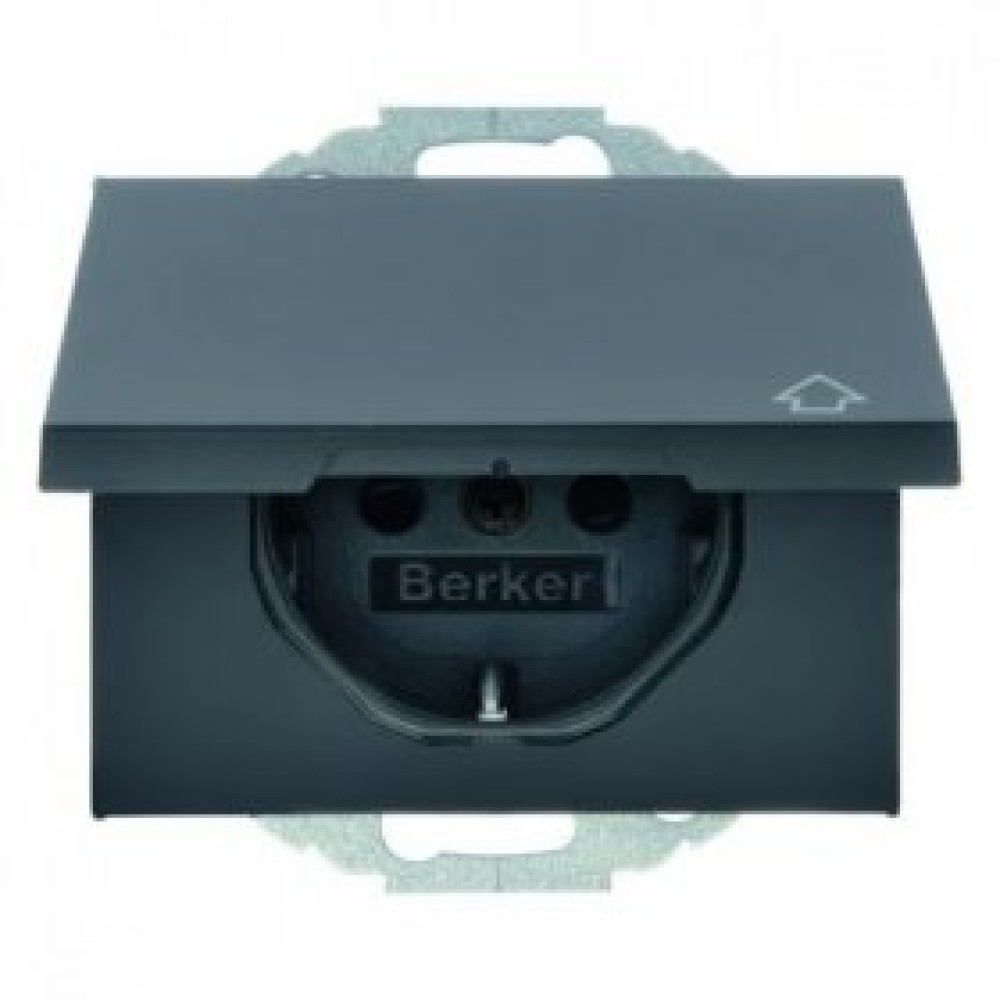 • 47477106 Штепсельная розетка SCHUKO с откидной крышкой цвет: антрацит, матовый K.1 Berker