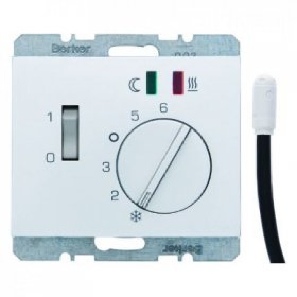 • 20347104 Регулятор температуры помещения пола с замыкающим контактом, с центральной панелью и светодиодом цвет: стальной, лак K.5 Berker