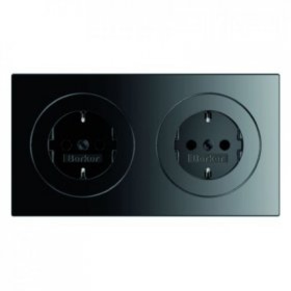 • 47202045 Штепсельная розетка SCHUKO, 2-местная с рамкой, черная, с блеском R.3 Berker