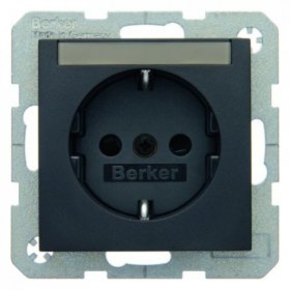 41491606 Штепсельная розетка SCHUKO с полем для надписей цвет: антрацит, матовый B.1/B.3/B.7 Glas Berker