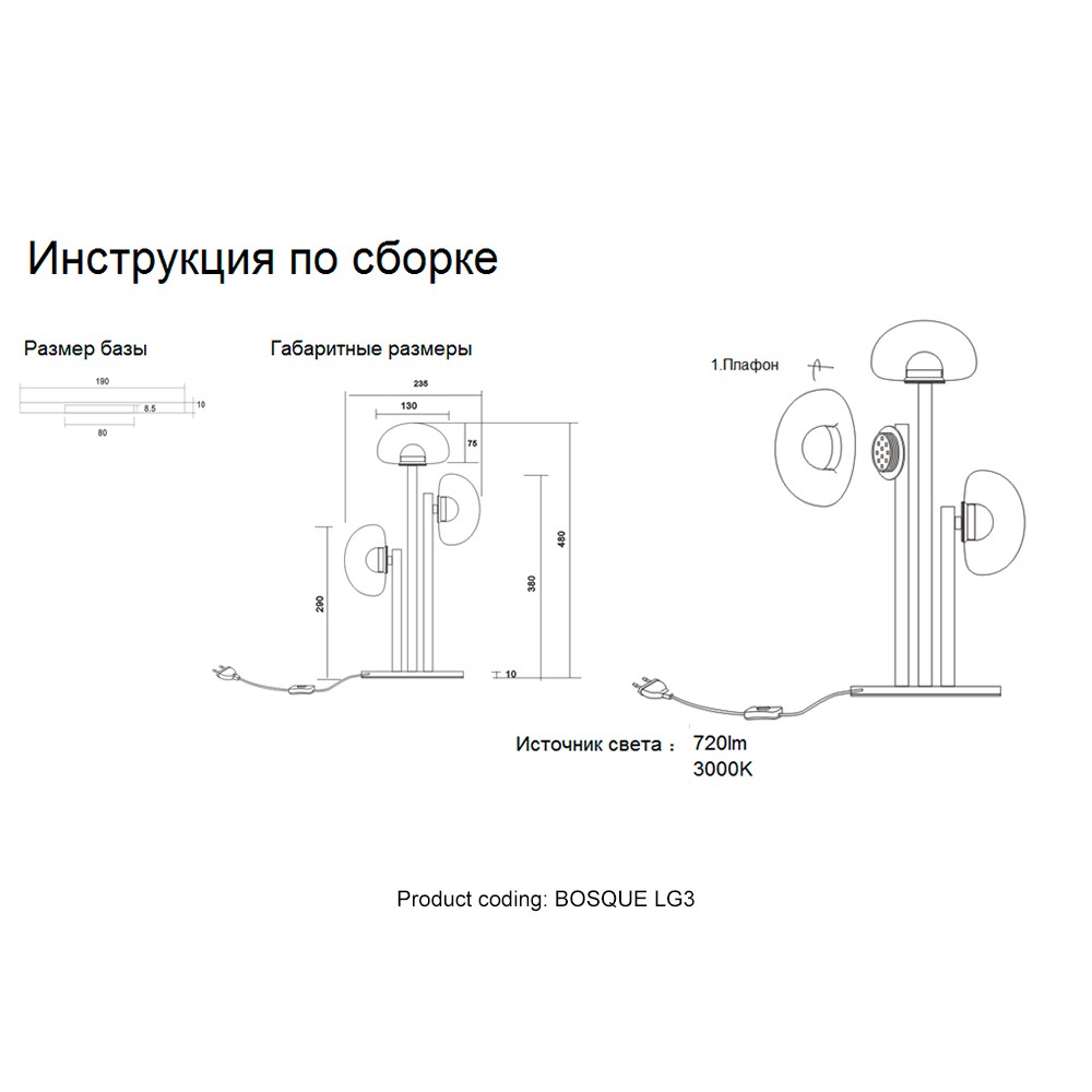 | Количество плафонов/абажуров3 | Коробка вес гр2260 | Коробка высота250 |