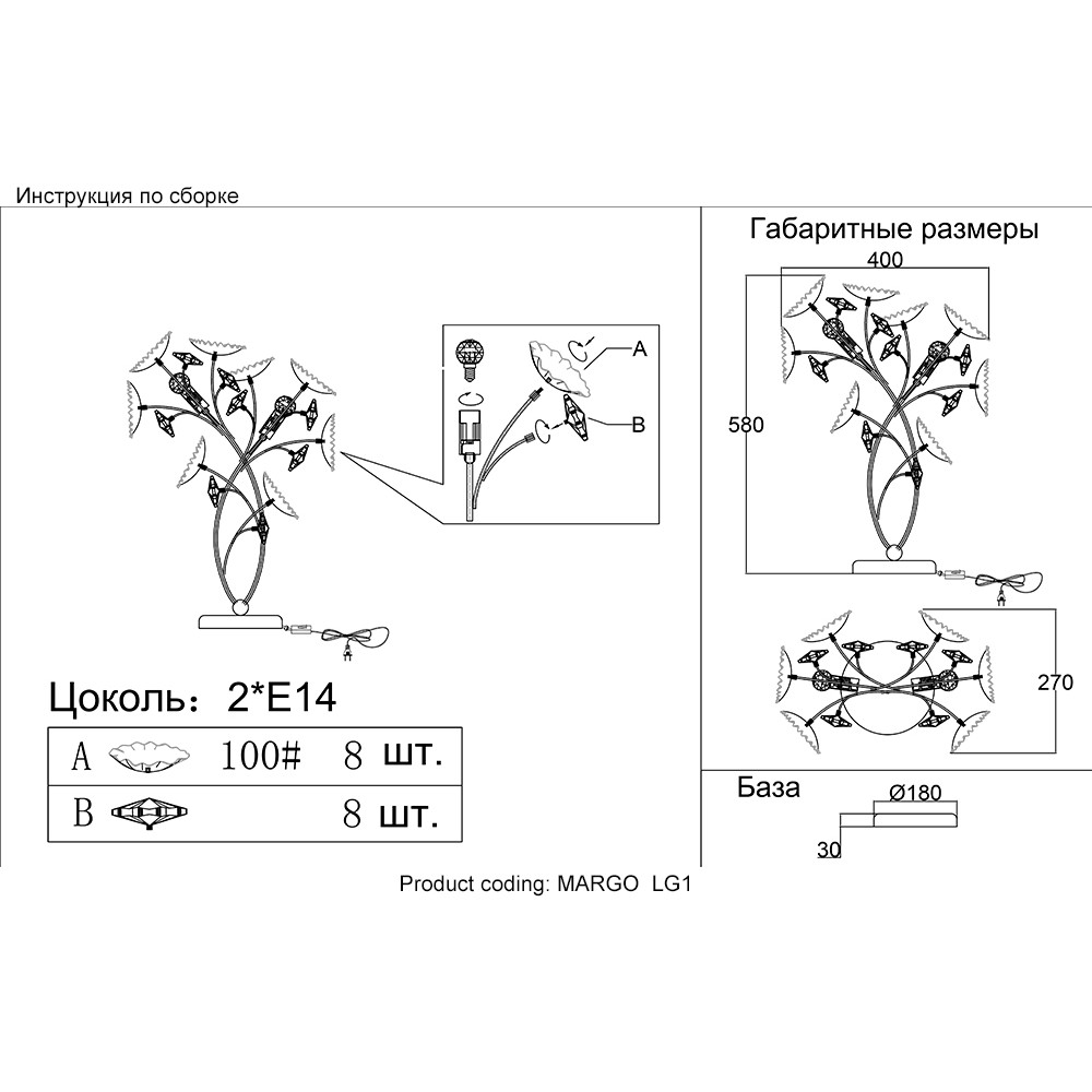 | Количество плафонов/абажуров2 | Коробка вес гр3920 | Коробка высота190 |