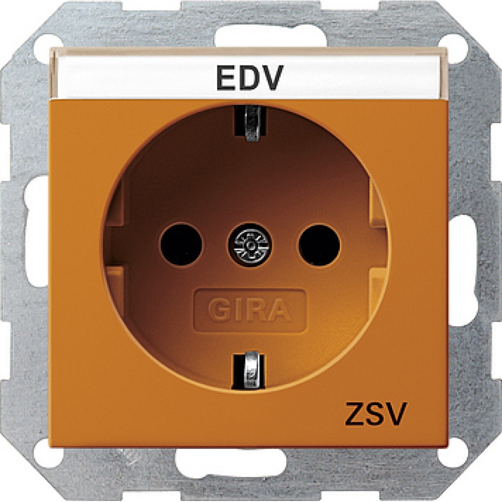 • 047302 Розетка с заземляющими контактами с полем для надписи и надпись ZSV Оранжевый Gira
