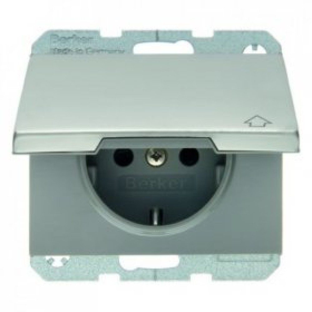 • 47517104 Штепсельная розетка SCHUKO с откидной крышкой цвет: нержавеющая сталь K.5 Berker