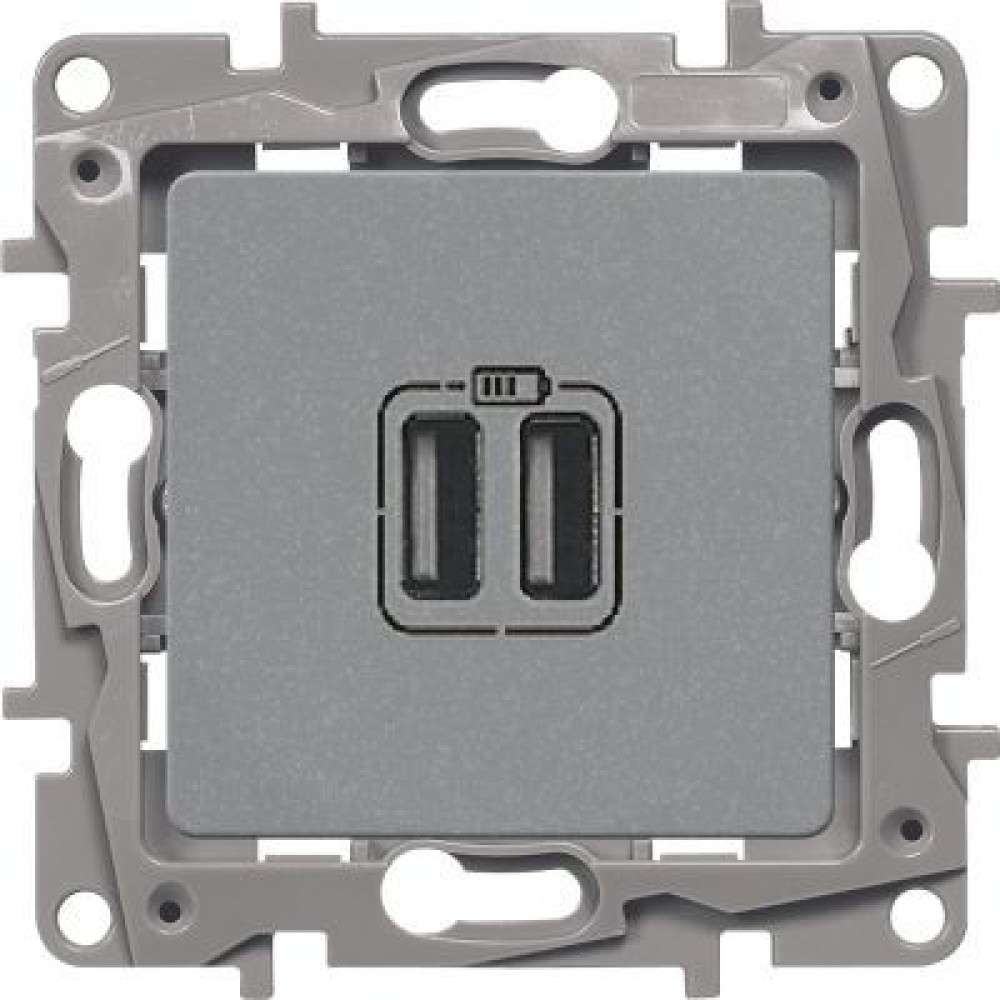 672494 Зарядное устройство с двумя USB-разьемами 240В/5В 2400мА - Etika - алюминий Legrand 3088 ₽