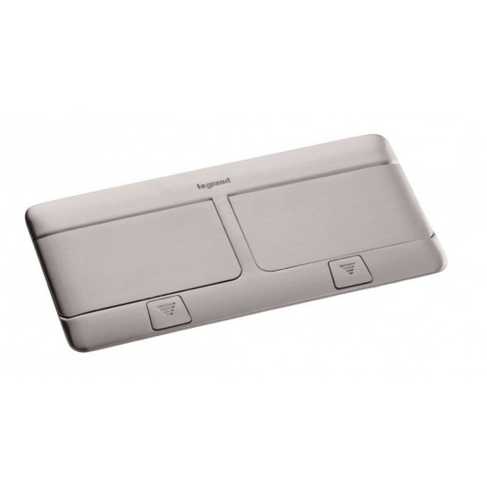 054022 Выдвижной розеточный блок 8 (4+4) модулей, для столов и мебели, возможна установка в фальшпол и монолитные полы, цвет - нержавеющая сталь