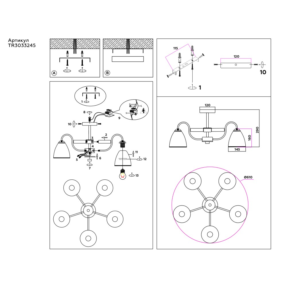 Количество ламп5 Количество плафонов/абажуров5 Коробка вес гр4000