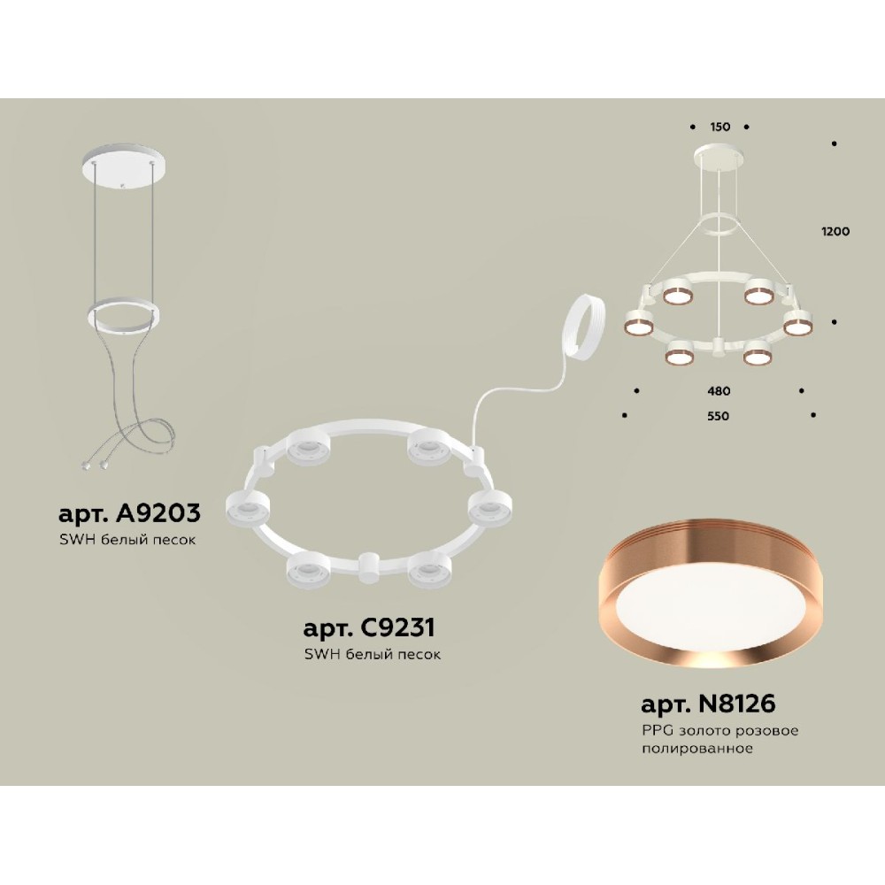 Технические характеристики Подвесная люстра Ambrella Light Traditional (A9203, C9231, N8126) XR92031103