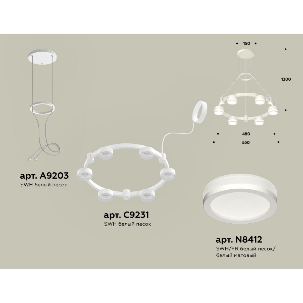 Технические характеристики Подвесная люстра Ambrella Light Traditional (A9203, C9231, N8412) XR92031200