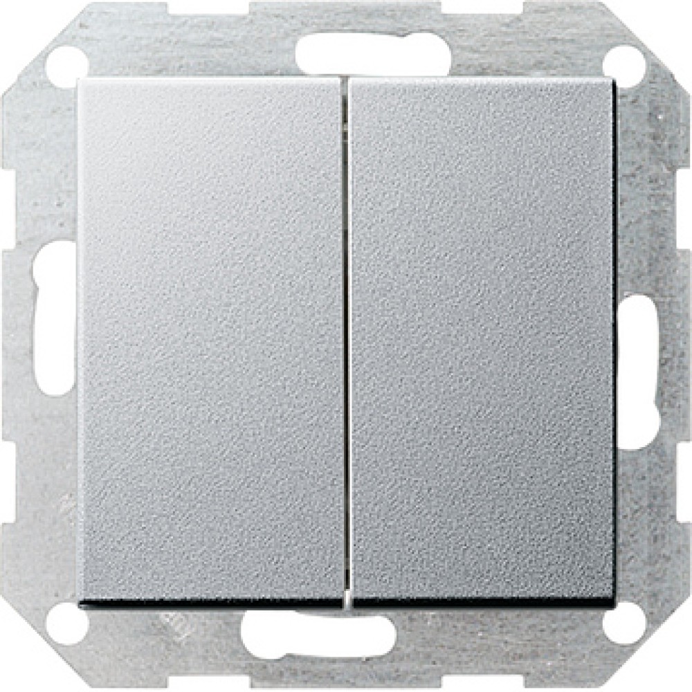012526 Двухклавишный выключатель с самовозвратом 10А/250В в сборе Алюминий Gira 7132 ₽