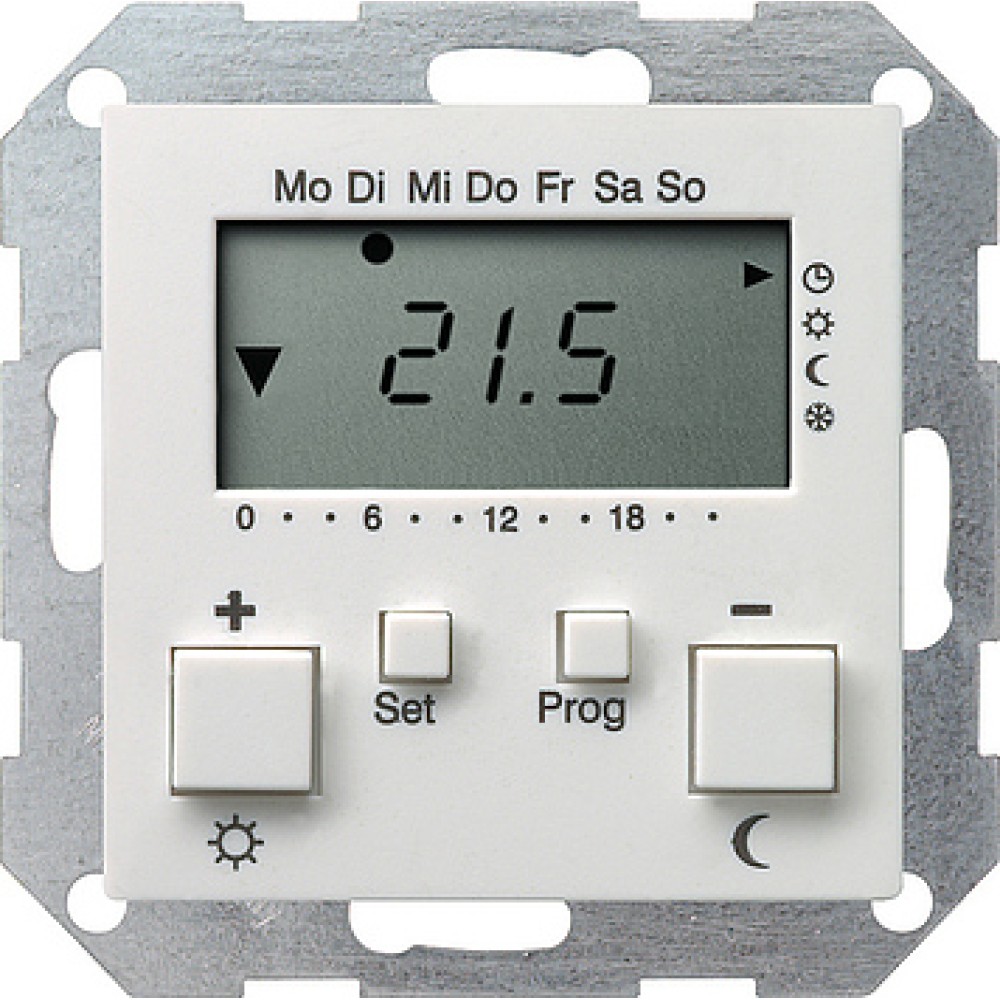 • 237003 Термостат 230V с часами и функцией охлаждения белый глянец Белый Gira