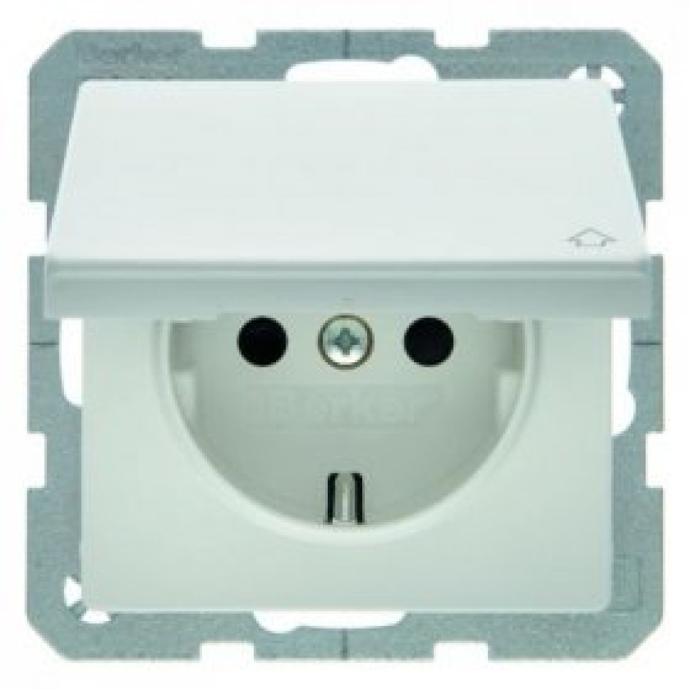 47516089 Штепсельная розетка SCHUKO с откидной крышкой цвет: полярная белизна, с эффектом бархата с защитой от детей, Q.1 Berker