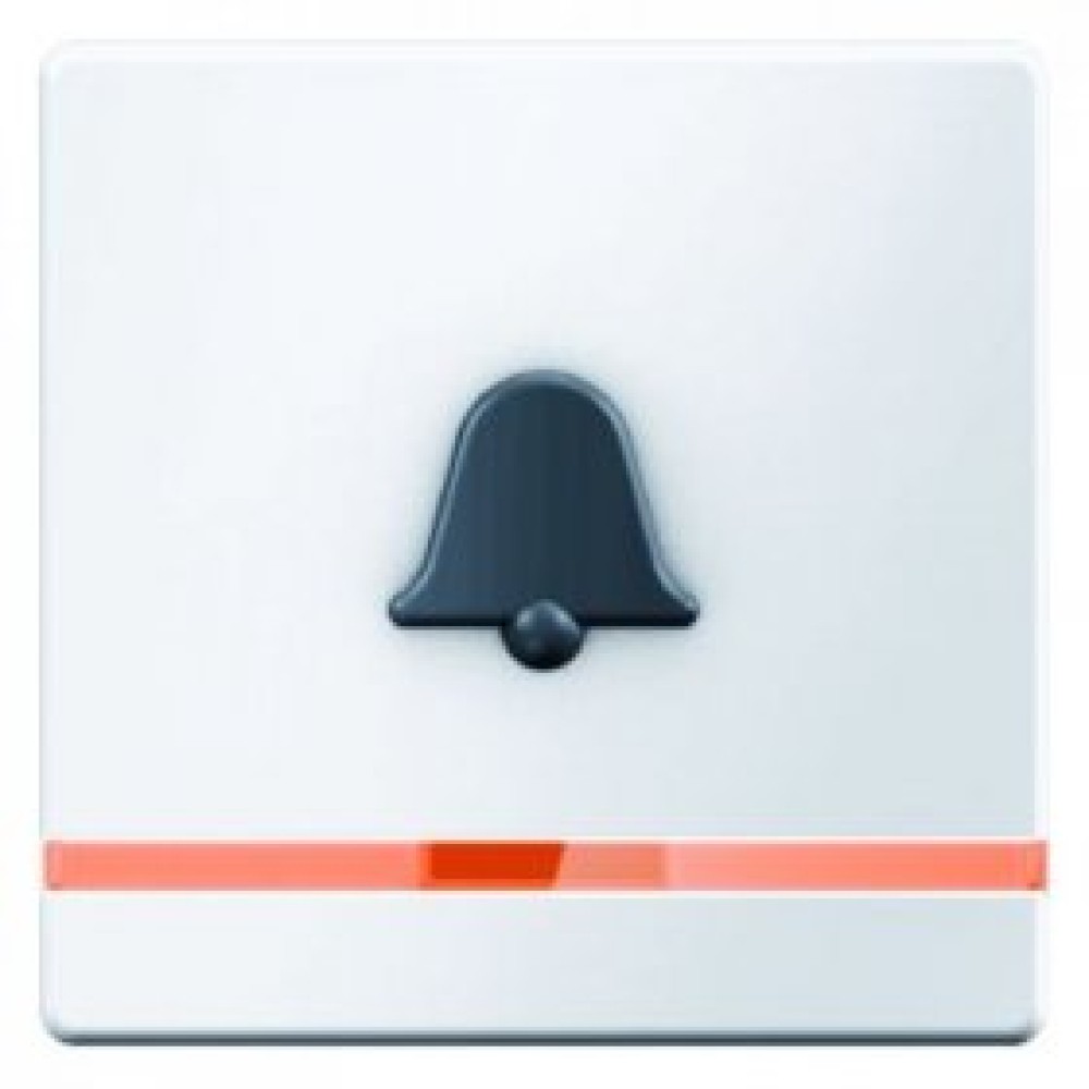 16516059 Клавиша выключателя с оранжевой линзой и выступающим символом "Звонок" цвет: полярная белизна, с эффектом бархата, Q.1 Berker