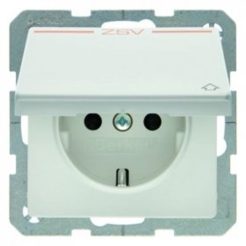 • 47516049 Штепсельная розетка SCHUKO, с откидной крышкой, с оттиском, Q.1/Q.3, цвет: полярная белизна, с эффектом бархата Berker