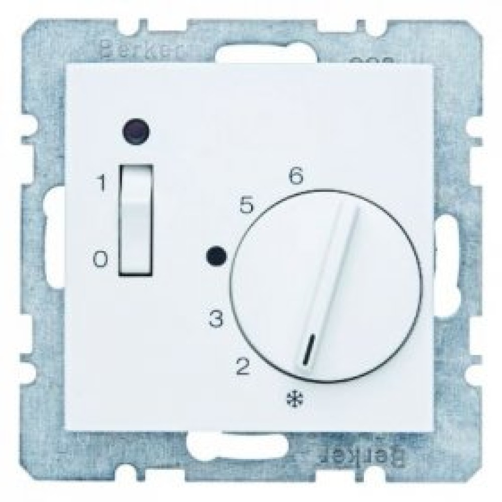 20301909 Регулятор температуры помещения с размыкающим контактом, центральной панелью, одноклавишным выключателем и светодиодом цвет: полярная белизна, матовый S.1/B.1/B.3/B.7 Glas Berker