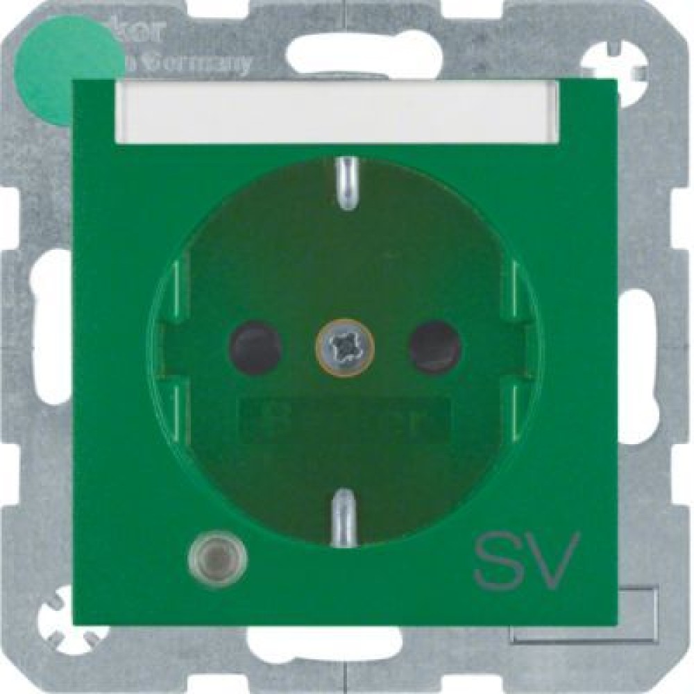 • 41101913 Штепсельная розетка SCHUKO с контрольной лампой, полем для надписи цвет: зеленый, матовый S.1 Berker