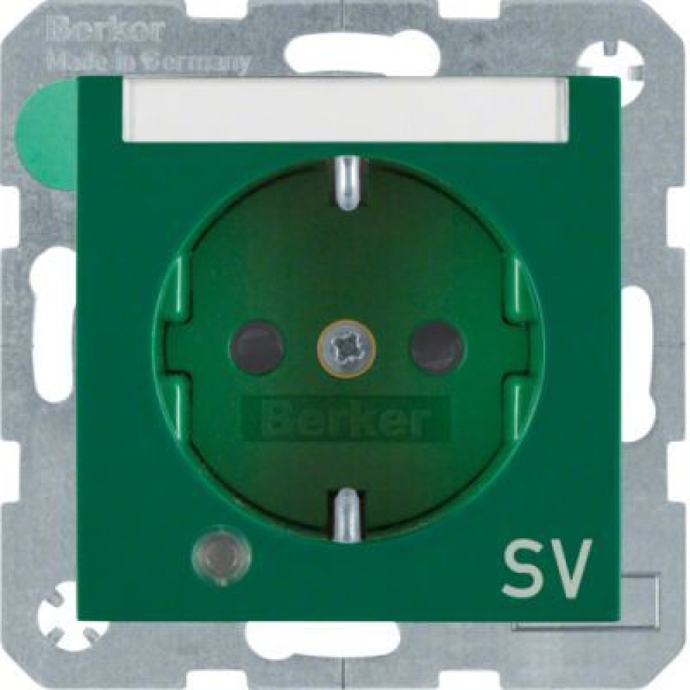 41108913 Штепсельная розетка SCHUKO с контрольной лампой, полем для надписи цвет: зеленый, с блеском S.1 Berker