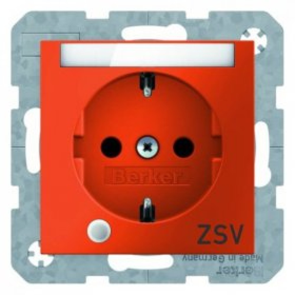 • 41108914 Штепсельная розетка SCHUKO с контрольной лампой, полем для надписи цвет: оранжевый, с блеском S.1 Berker