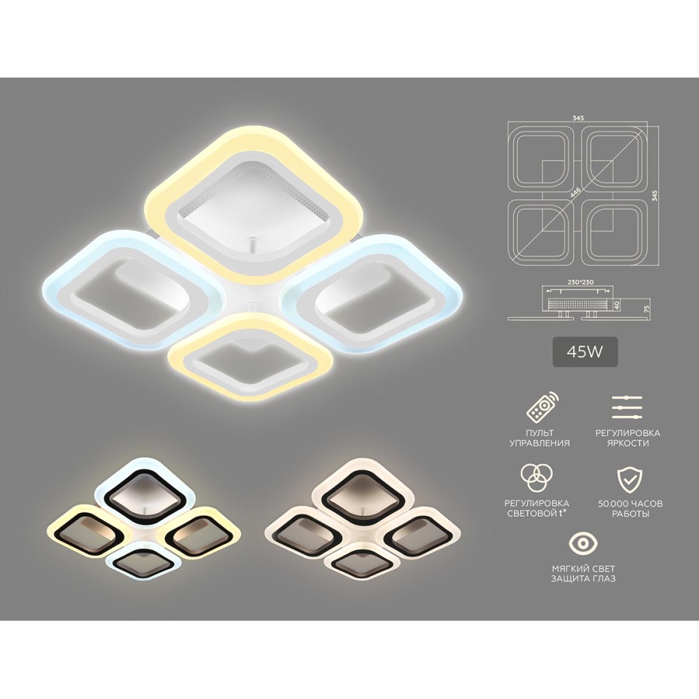 Технические характеристики Потолочная светодиодная люстра Ambrella Light Acrylica Original FA4371