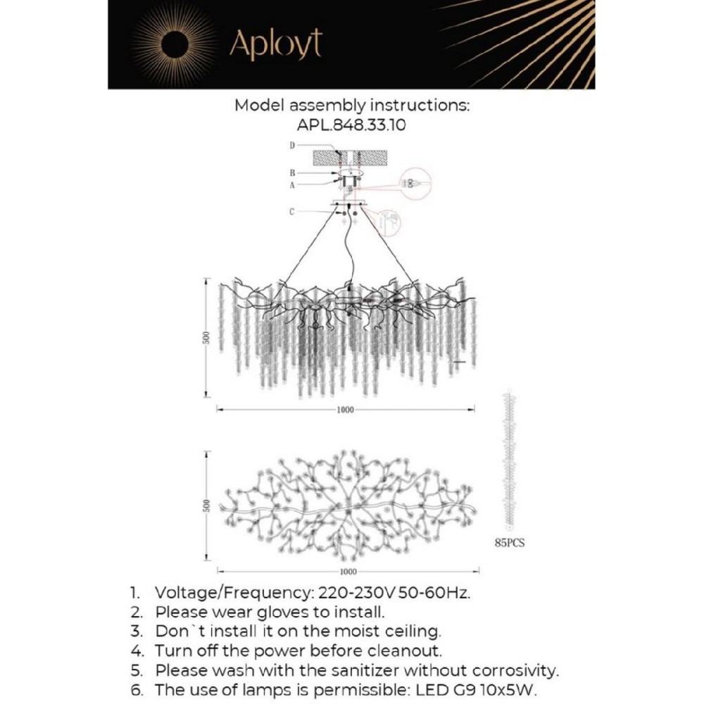 | Материал плафона/абажура | Хрусталь |