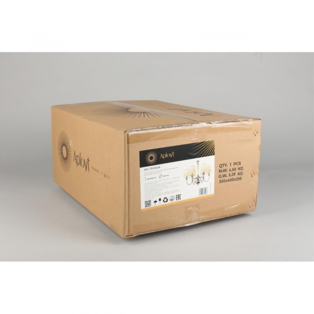 | Количество ламп6 | Количество плафонов/абажуров6 | Коробка вес гр5600 |