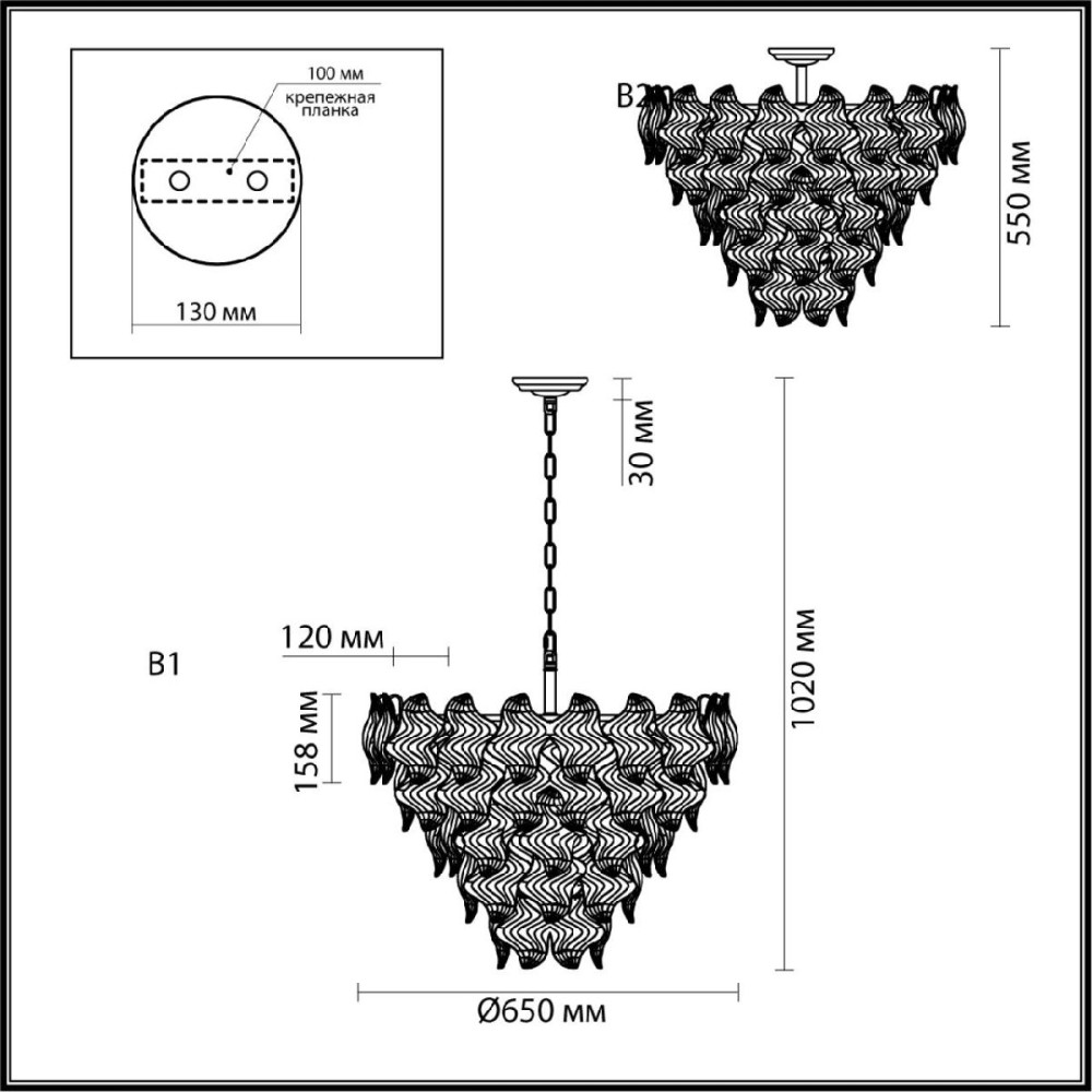 | Направление абажуров/плафонов | Вниз |