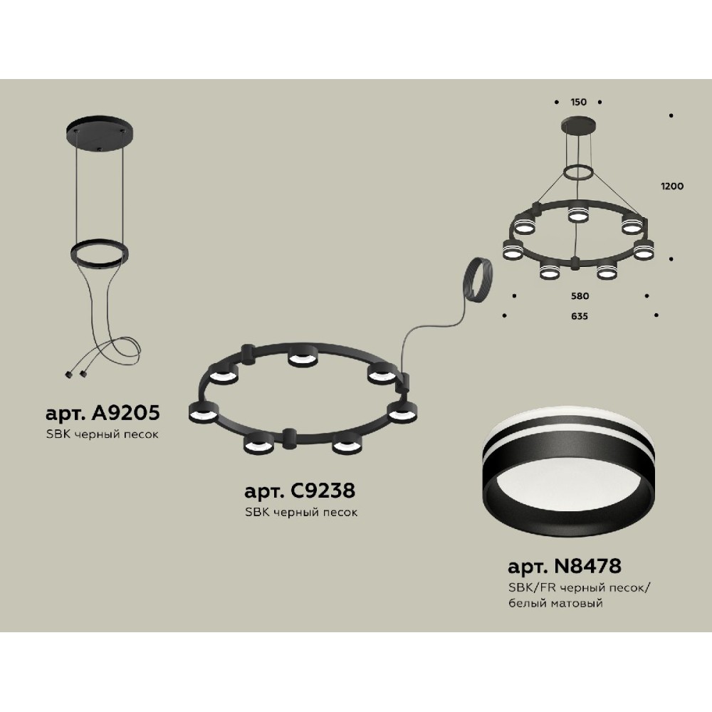Технические характеристики Подвесная люстра Ambrella Light Traditional (A9205, C9238, N8478) XR92051603