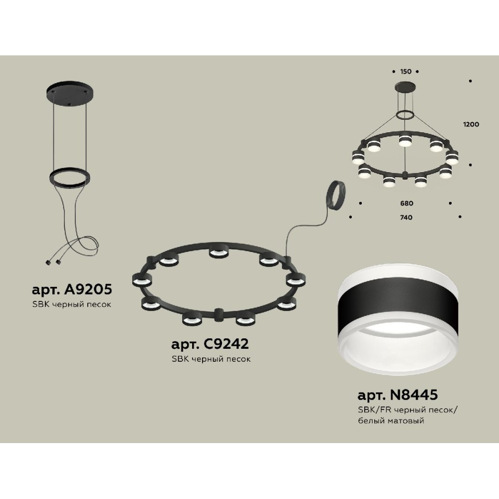 Технические характеристики Подвесная люстра Ambrella Light Traditional (A9205, C9242, N8445) XR92051902
