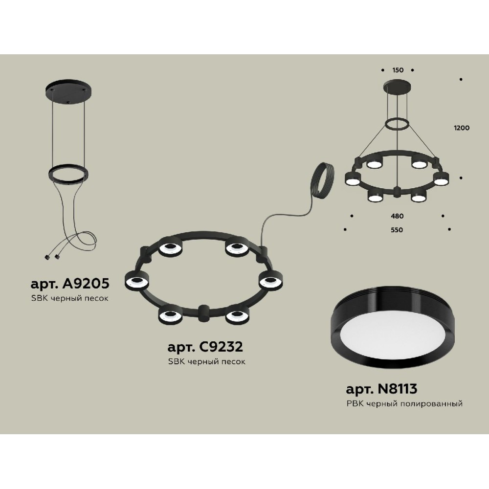 Технические характеристики Подвесная люстра Ambrella Light Traditional (A9205,C9232,N8113) XR92051100