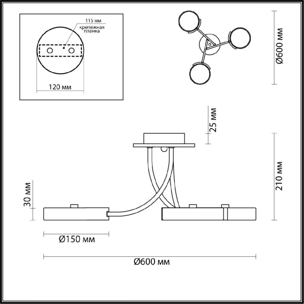 | Количество плафонов/абажуров3 | Коробка вес гр1525 | Коробка высота180 |