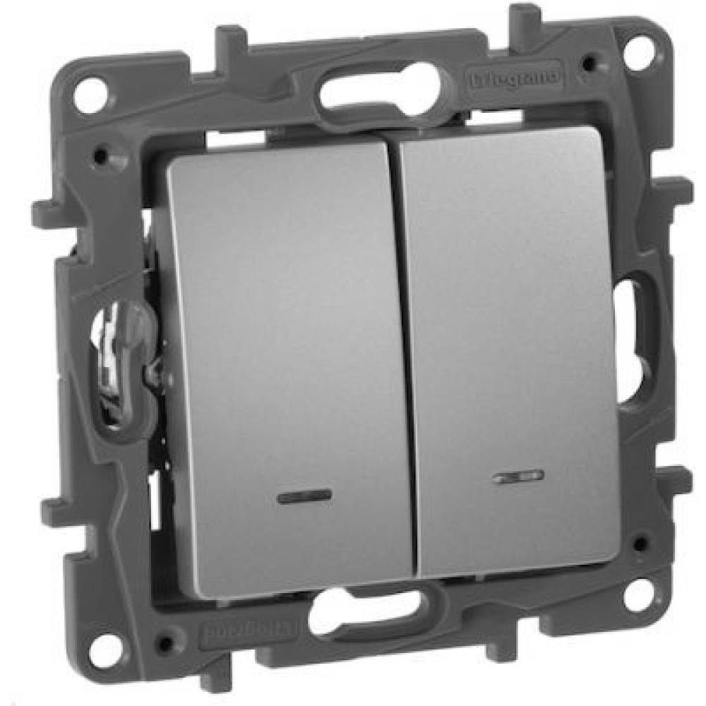 • 672416 Выключатель/переключатель двухклавишный с подсветкой - Etika - 10 A - 250 В~ - алюминий Legrand
