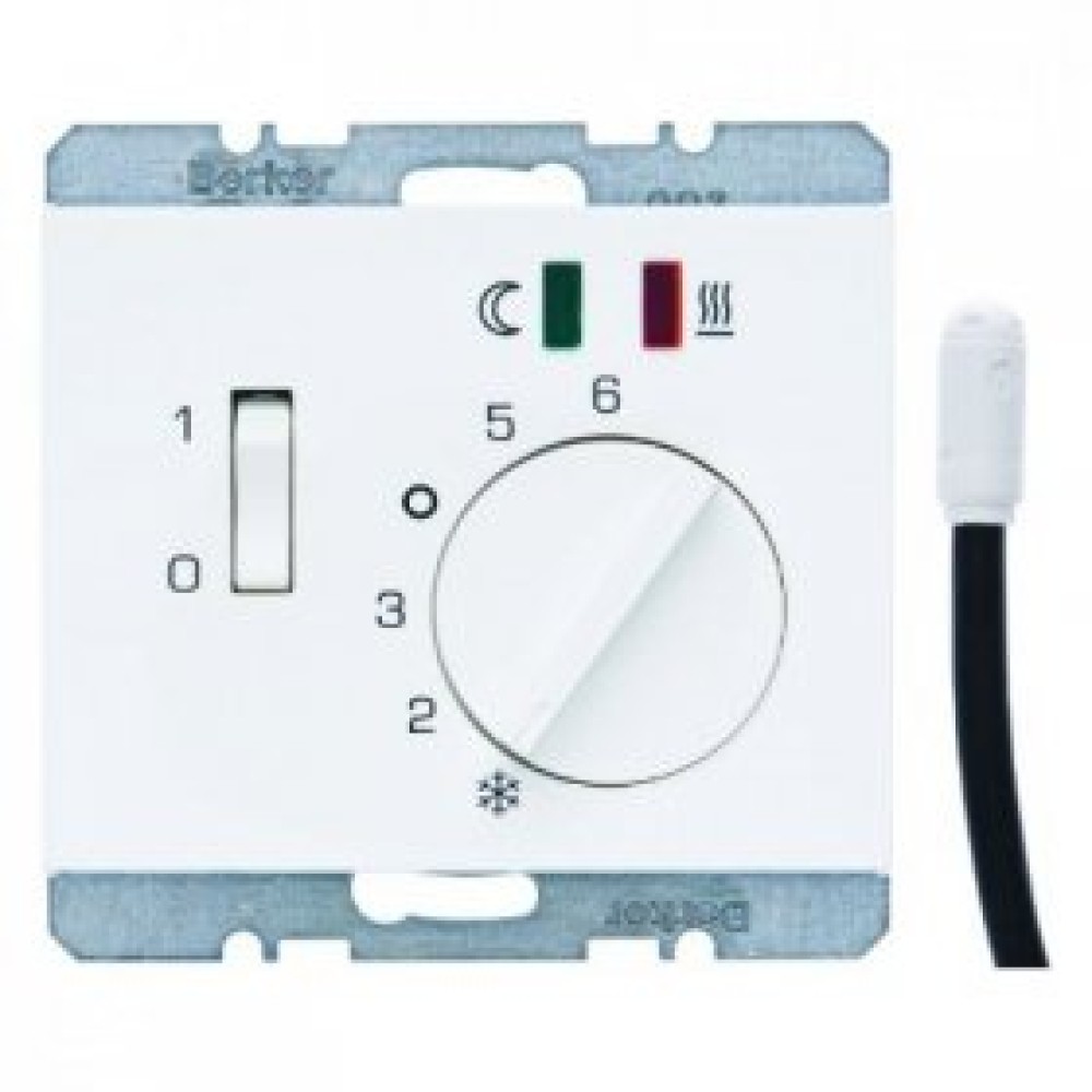 20347109 Регулятор температуры помещения пола с замыкающим контактом, с центральной панелью и светодиодом цвет: полярная белизна, с блеском K.1 Berker