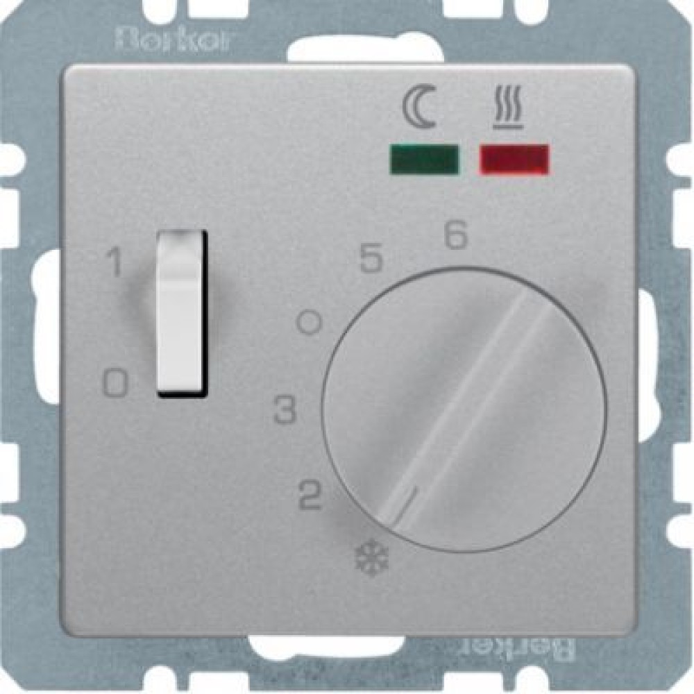 • 20346084 Регулятор температуры помещения пола с замыкающим контактом, с центральной панелью и светодиодом 2 светодиода и датчик температуры пола, Q.1/Q.3, цвет: алюминиевый, с эффектом бархата Berker