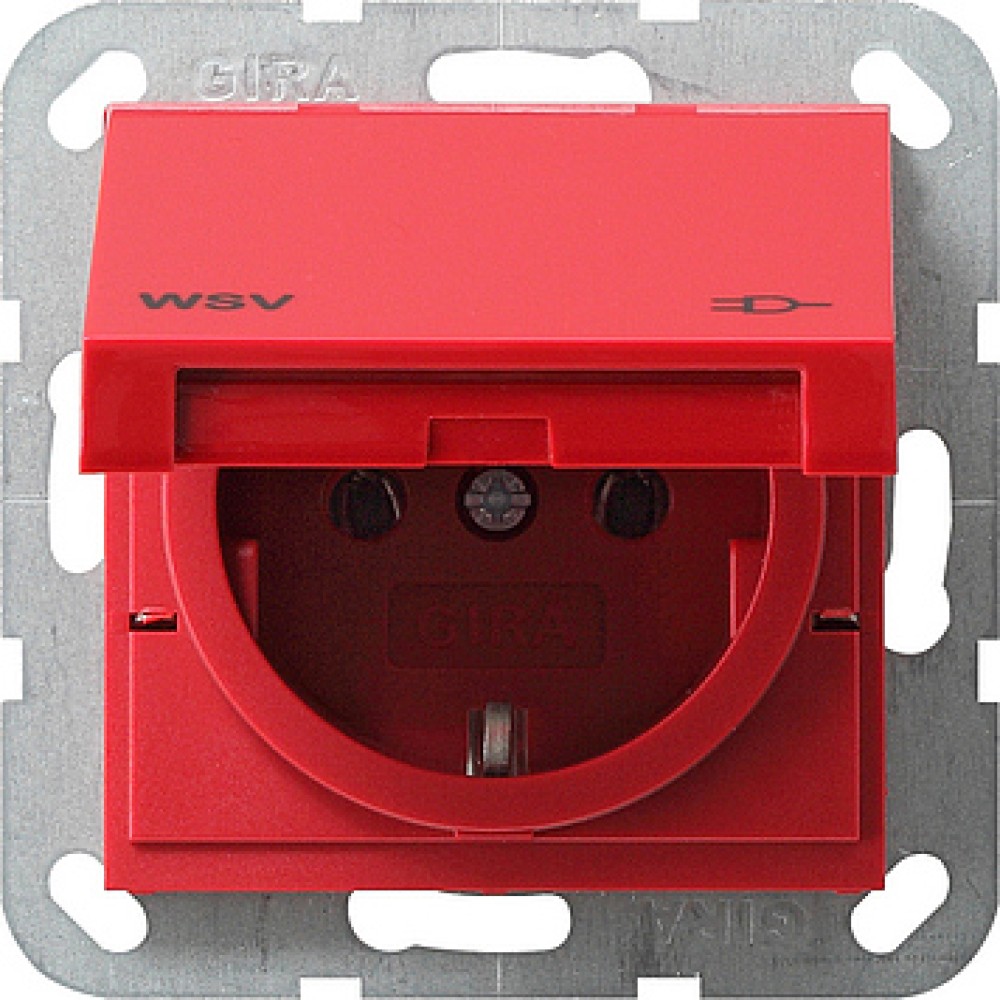 • 010402 Розетка с заземляющими контактами по классу WSV Красный Gira