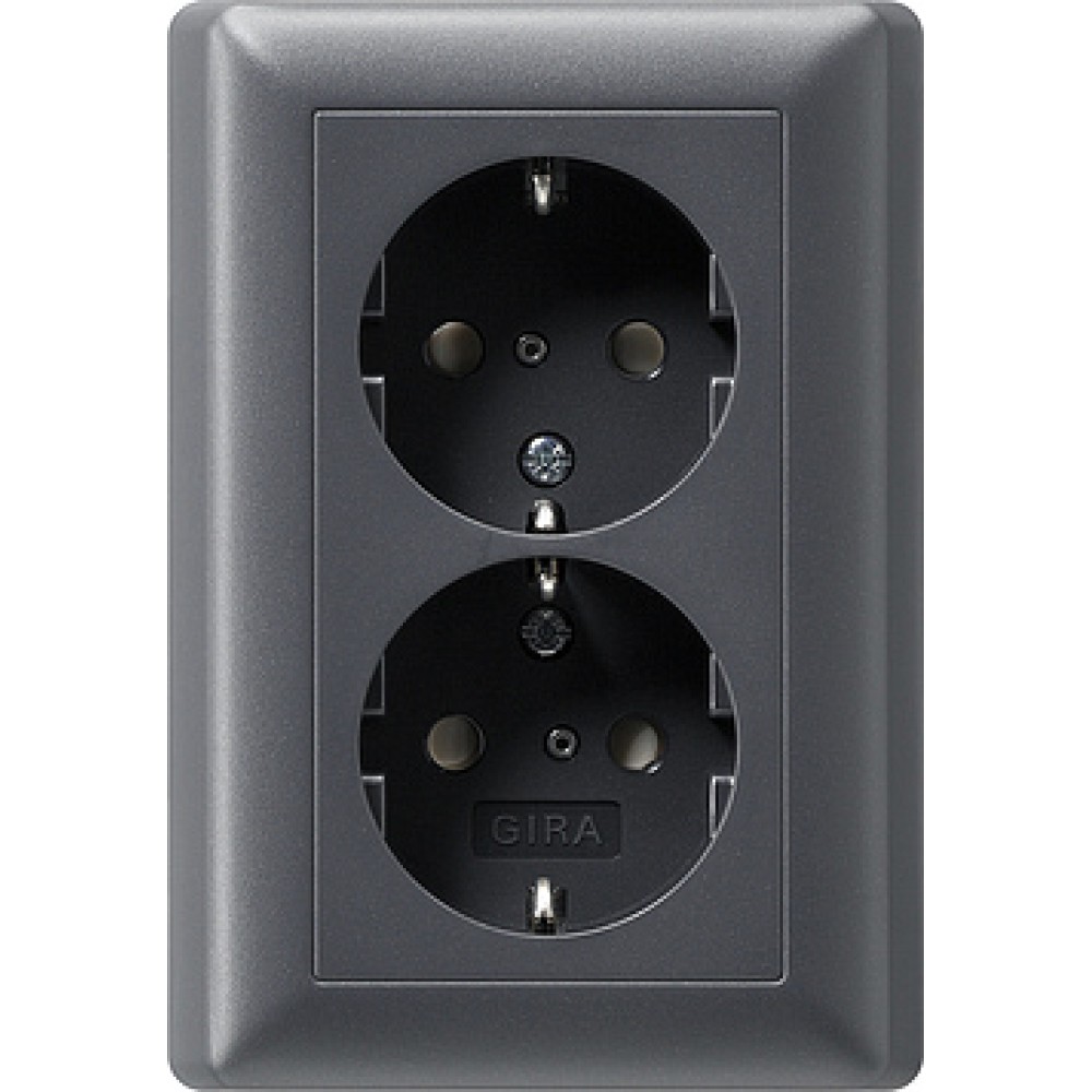 • 078328 Розетка двойная с заземляющими контактами в комплекте с рамкой Антрацит Gira