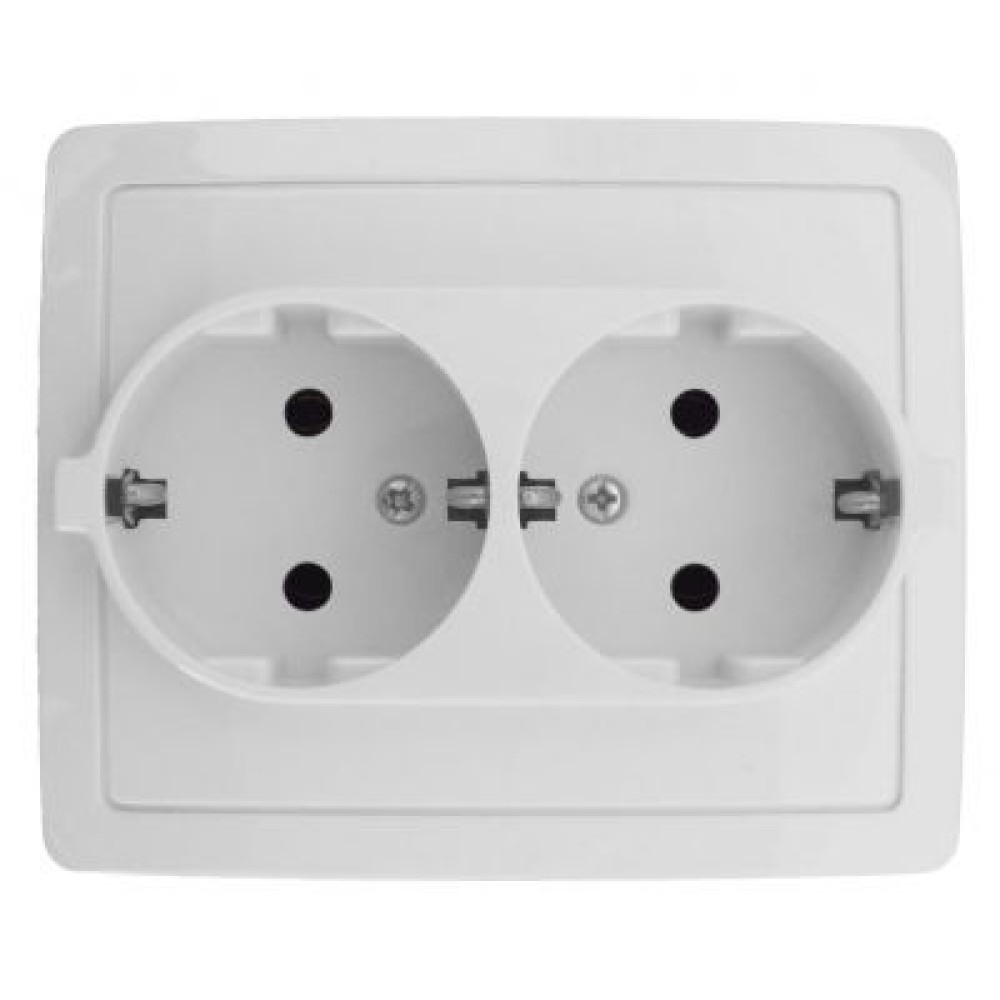 • 1590456-030 Розетка двойная с заземлением Schuko, винтовой зажим, 16А 250В, белый Simon 15