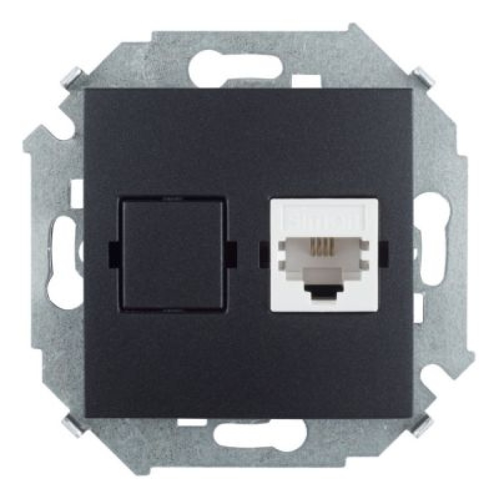 • 1591480-038 Розетка телефонная RJ11, винтовой зажим, графит Simon 15