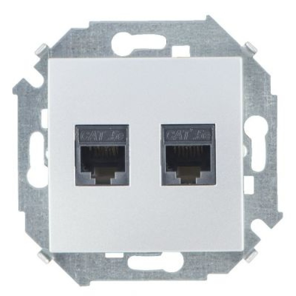 • 1591552-033 Розетка компьютерная двойная RJ45 кат.5e (AMP), алюминий Simon 15