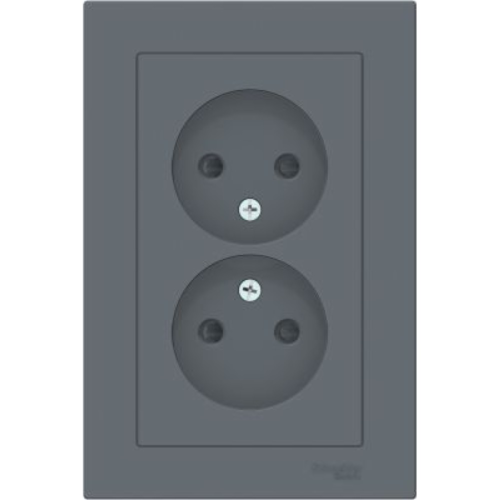 • ATN000722 Atlasdesign Розетка двойная без заземления со шторками,16А, в сборе, Грифель Schneider Electric