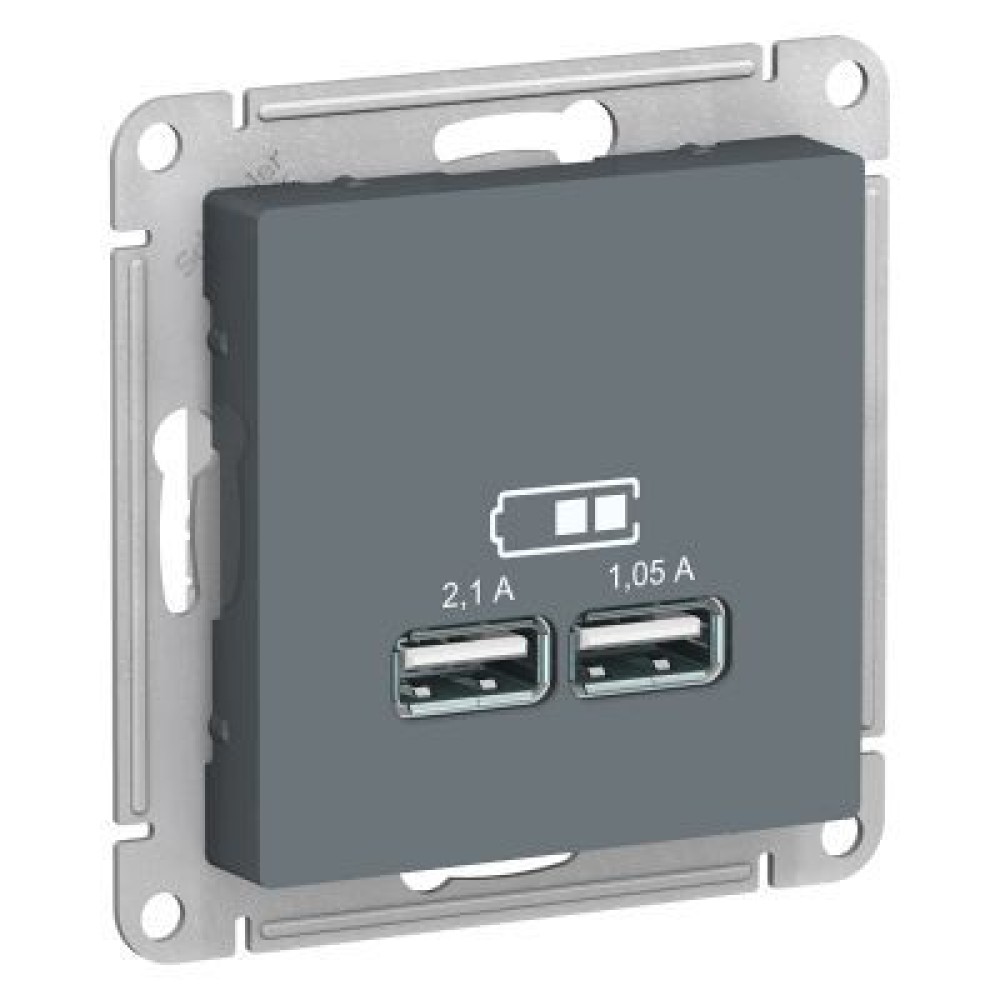 Механизмы Atlasdesign от французского производителя великолепно завершат оформление вашей квартиры или дома. Интернет-магазин Розетки-220 предлагает приобрести: ATN000733 Atlasdesign USB Розетка, 5В, 1 порт x 2,1 А, 2 порта х 1,05 А, механизм, Грифель Schneider Electric с доставкой по Санкт-Петербургу или России.